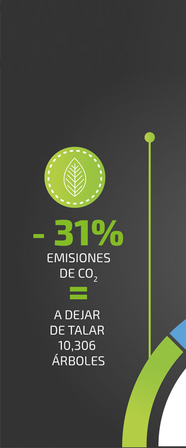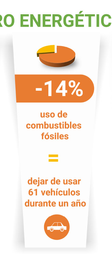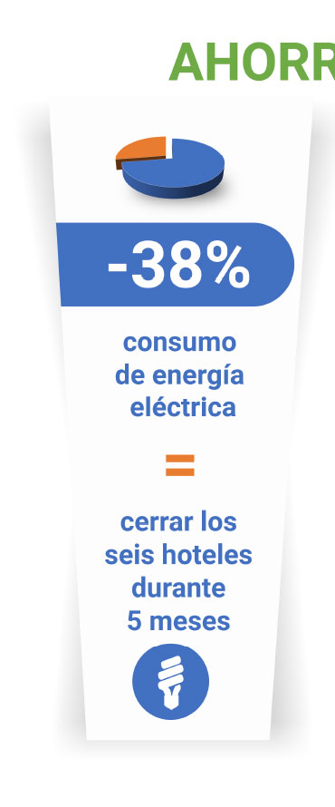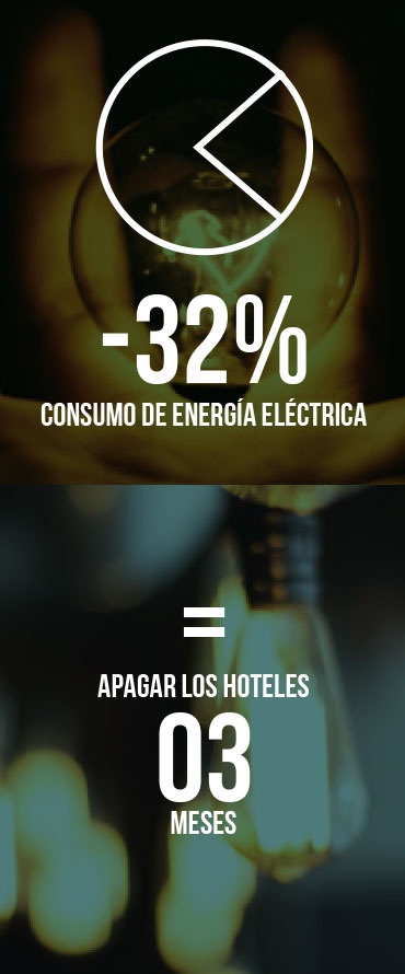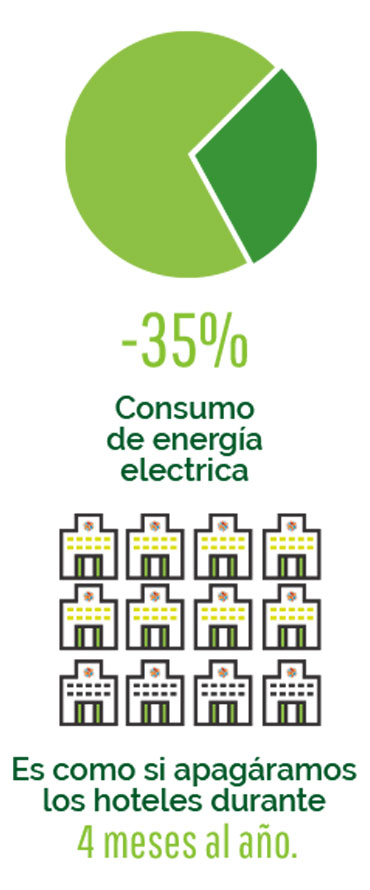 Reducir el consumo de energía eléctrica y combustibles y la emisión de C02 a la atmósfera tiene beneficios cuantificables para el medio ambiente, la comunidad en la que operamos y nuestros socios e invitados.