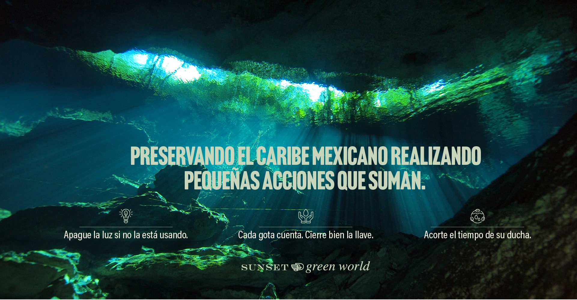 En Sunset World nos preocupamos por el medio ambiente y recomendamos a nuestros socios, huéspedes y colaboradores que adopten medidas concretas para cuidar recursos tan valiosos como el agua y la energía.