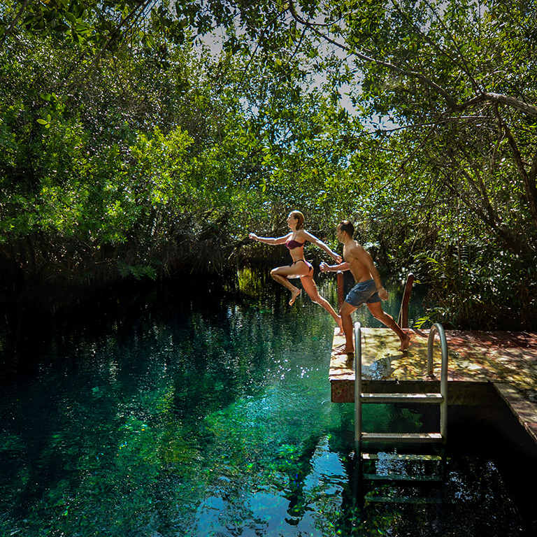 Tres Ríos is the only place in the Yucatan Peninsula where the cenotes are at ground level in the form of freshwater wells